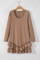 Ruffled Scoop Neck Three-Quarter Sleeve Mini Dress