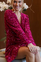 Sequin Surplice Long Sleeve Mini Dress