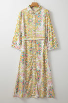 Tied Printed Long Sleeve Midi Dress