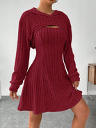Wide Strap Dress and Long Sleeve Hooded Top Set