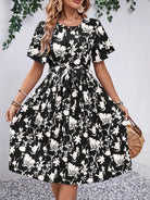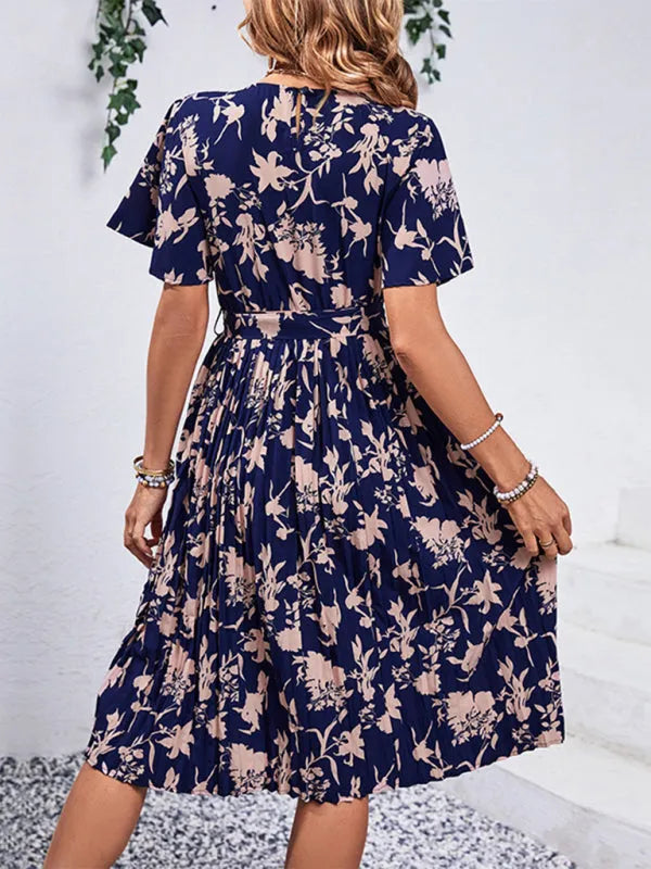 Women's New Round Neck Waist Floral Pattern Print
