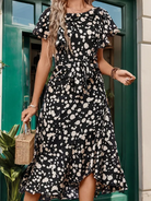 Women's Short Sleeve Round Neck Ruffled Polka Dot Dress