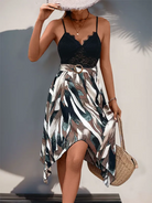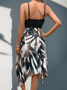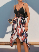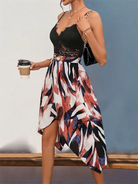 Women's V-neck suspenders irregular skirt summer lace stitching print dress
