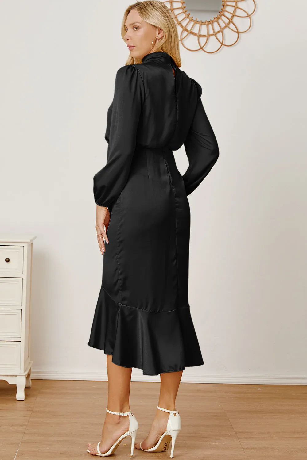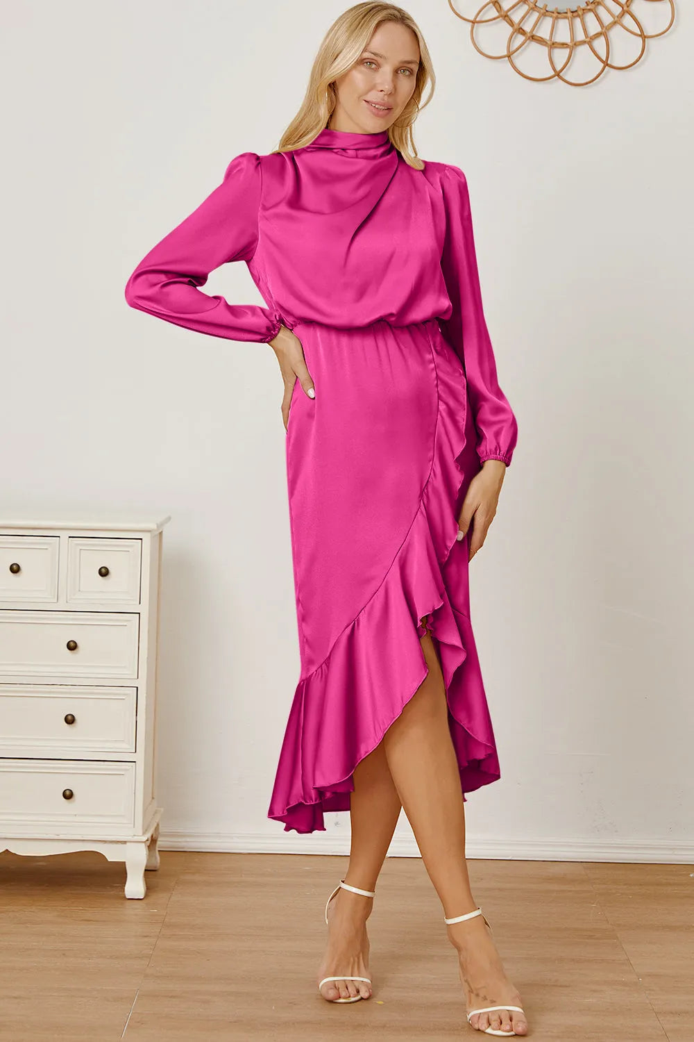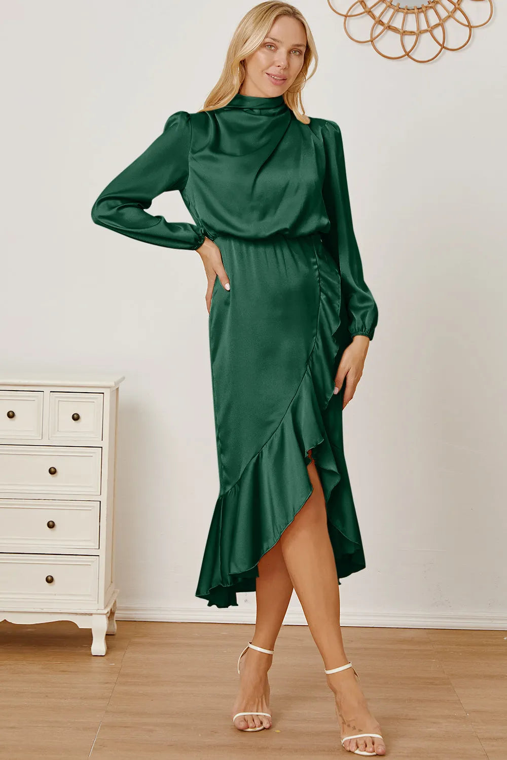 Mock Neck Ruffled Asymmetrical Dress