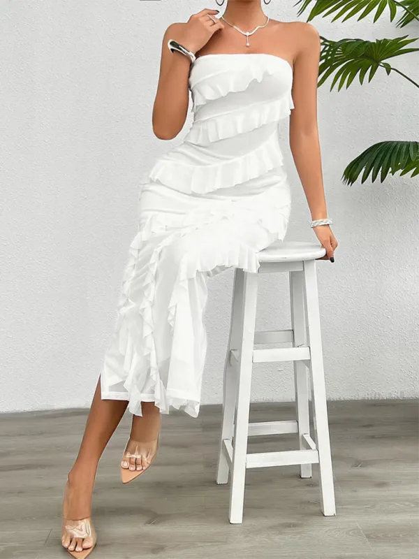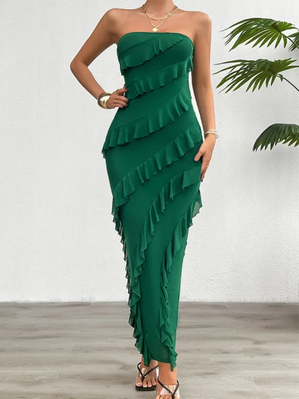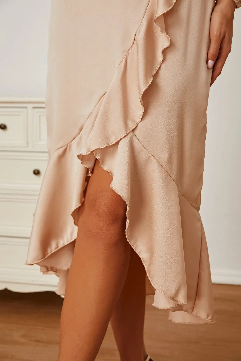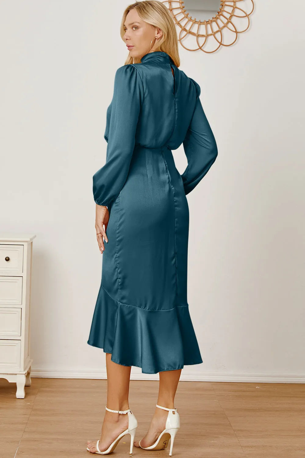 Mock Neck Ruffled Asymmetrical Dress