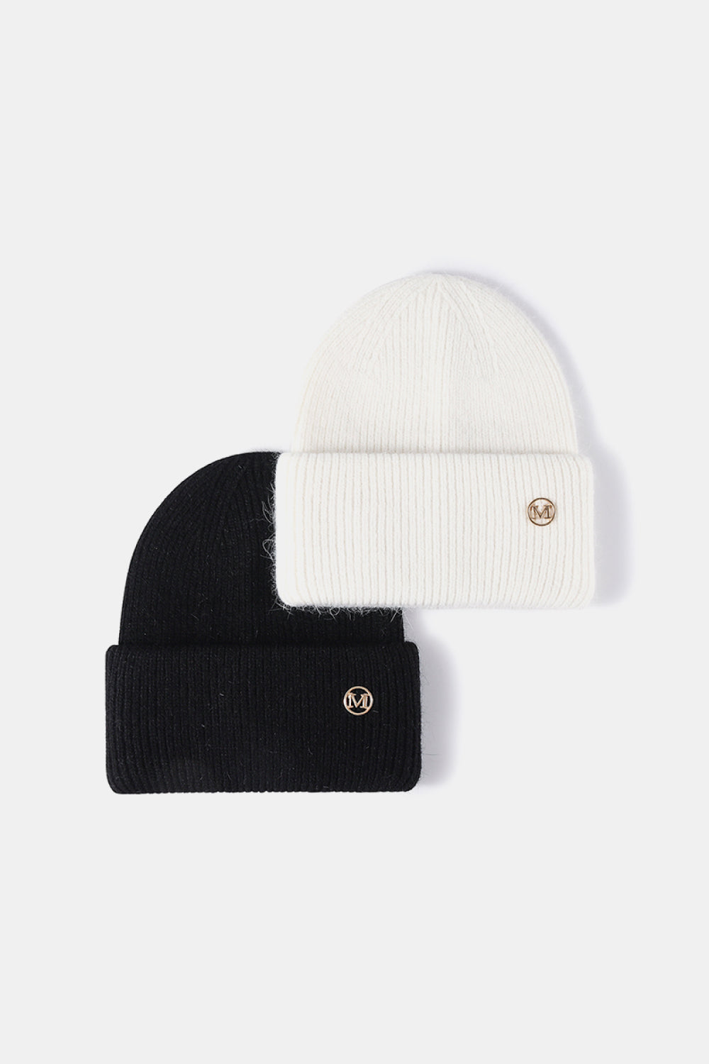 NEWYORK Patch Rib-Knit Cuffed Beanie