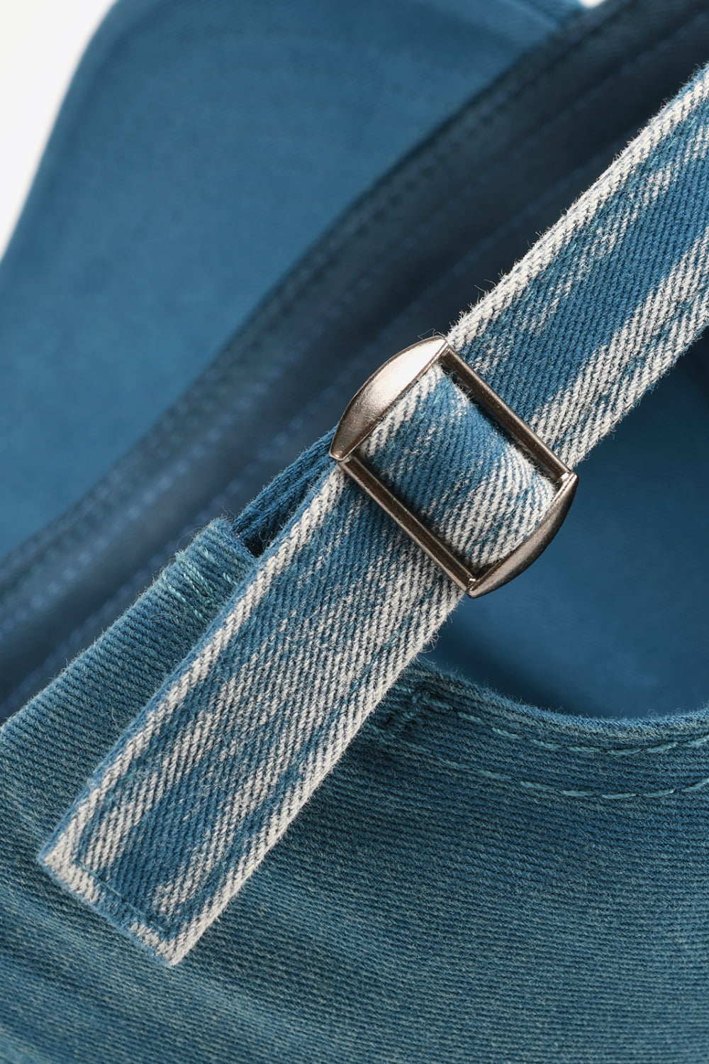 Adjustable cotton baseball hat in light blue with distressed design, perfect for casual wear and outdoor activities.