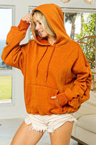 Stay cozy and stylish in this Ruched Long Sleeve Washed Fleece Hoodie, featuring ruched detailing for a chic and flattering look. The washed fleece fabric ensures a soft and comfortable feel against your skin, perfect for cool days or lounging at home. With long sleeves to keep you warm and a hoodie for added comfort, this hoodie is a versatile wardrobe essential. The ruched design adds a feminine touch to the classic hoodie silhouette, making it a trendy yet practical piece for casual outings. Elevate your loungewear game with this stylish and cozy hoodie that combines fashion and comfort effortlessly.