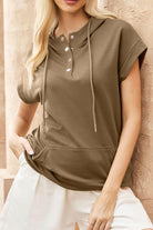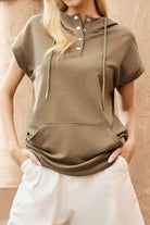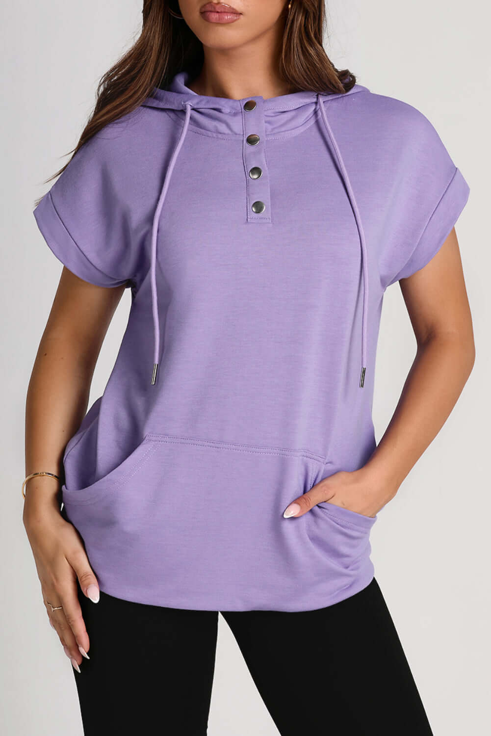 Drawstring Quarter Snap Cap Sleeve Hoodie