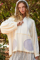 This half-zip hoodie combines style and comfort with its relaxed fit and trendy raglan sleeves. Made from a cozy thermal and fleece mix, it offers warmth and softness perfect for cooler days. The raw edge detail adds an edgy touch, while the pointed solid pattern gives it a unique flair. Ideal for layering or wearing on its own, this hoodie is a versatile piece that pairs well with jeans or leggings for a chic, casual look. Perfect for lounging or running errands!