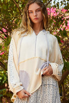 POL Half Zip Up Fleece Mix Back Star Patch Hoodie