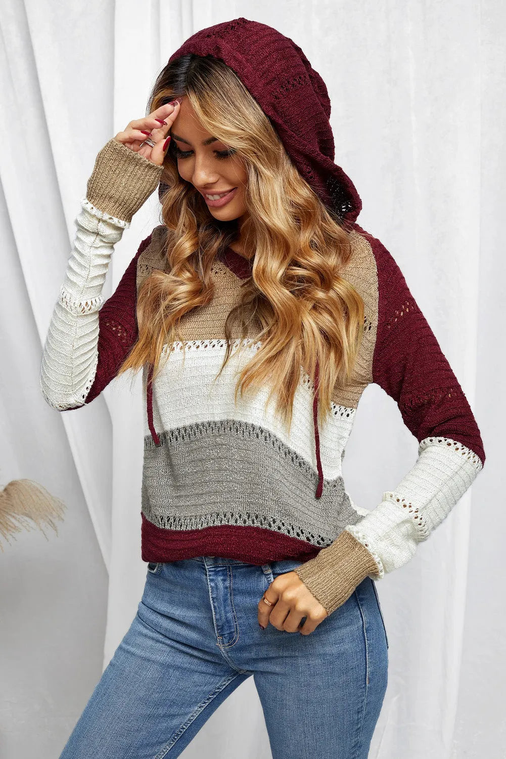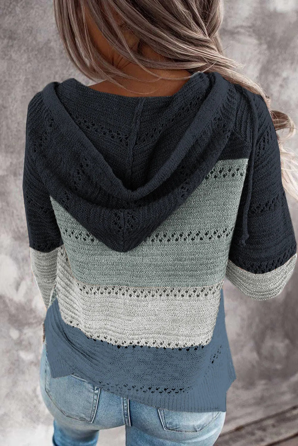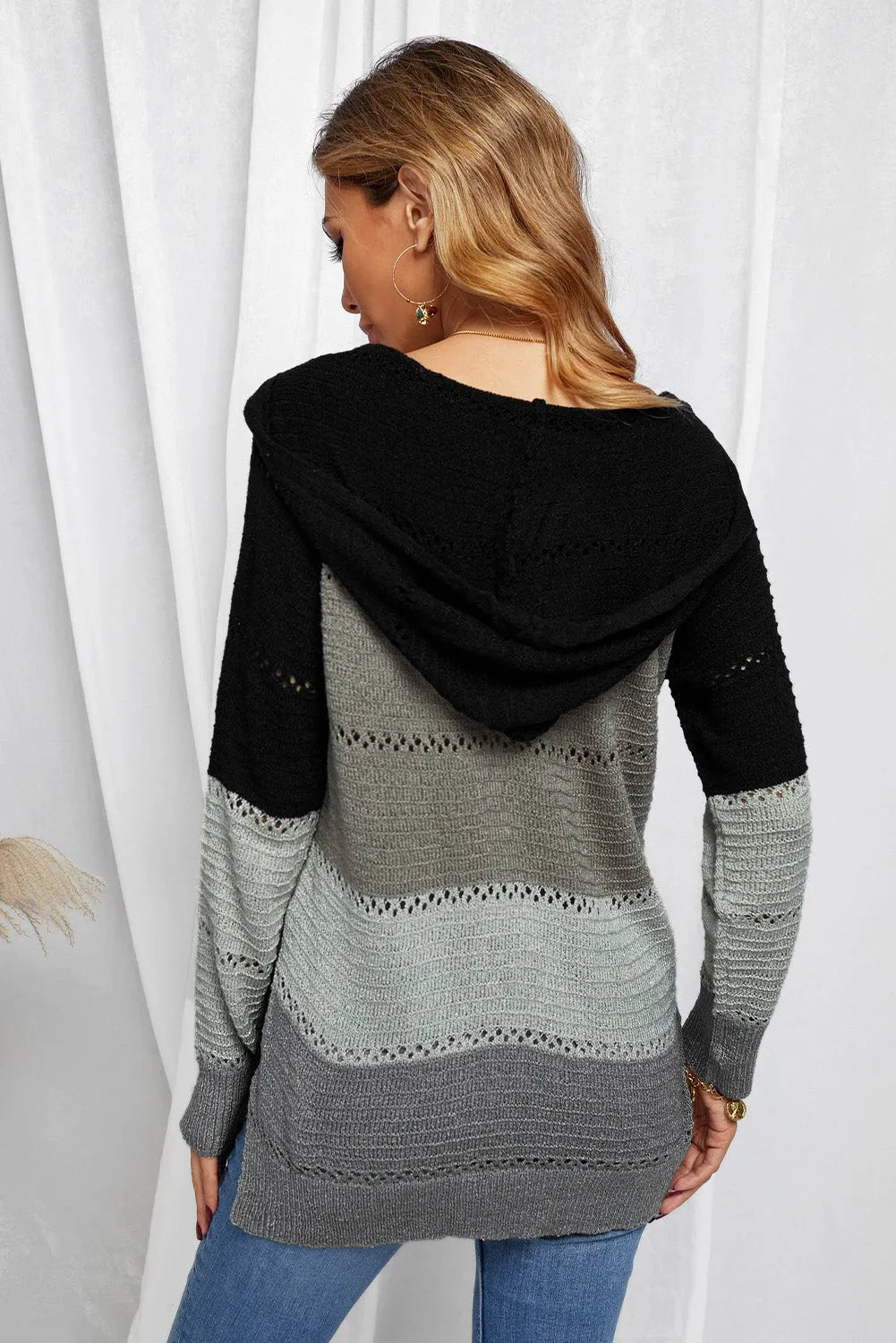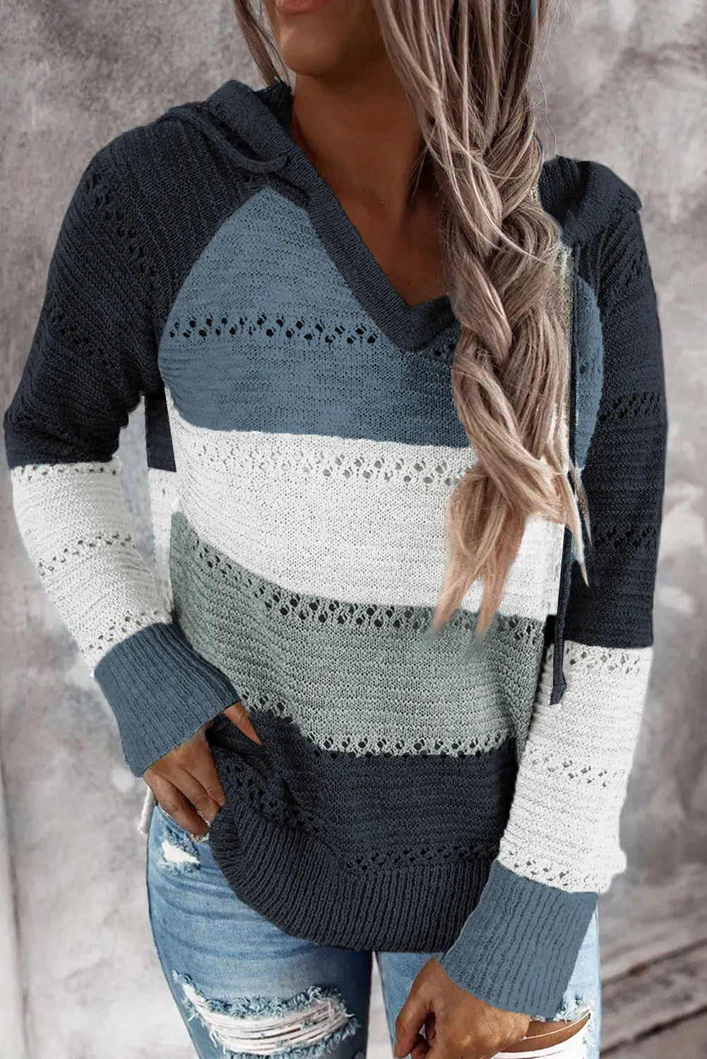 Full Size Color Block Knitted Hoodie