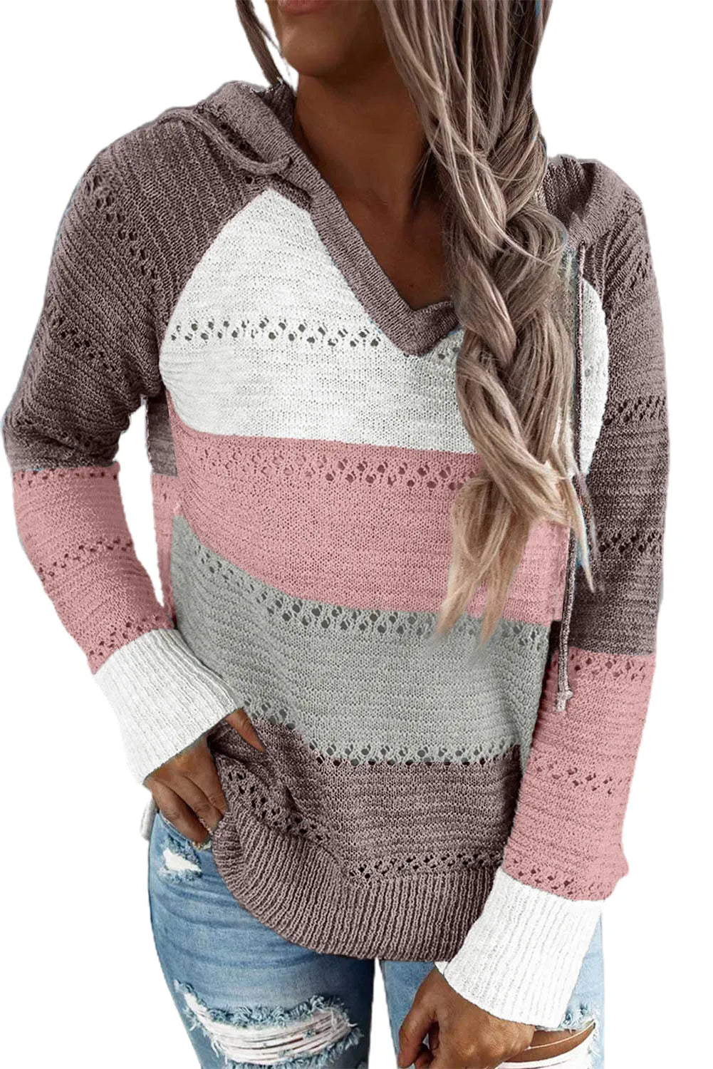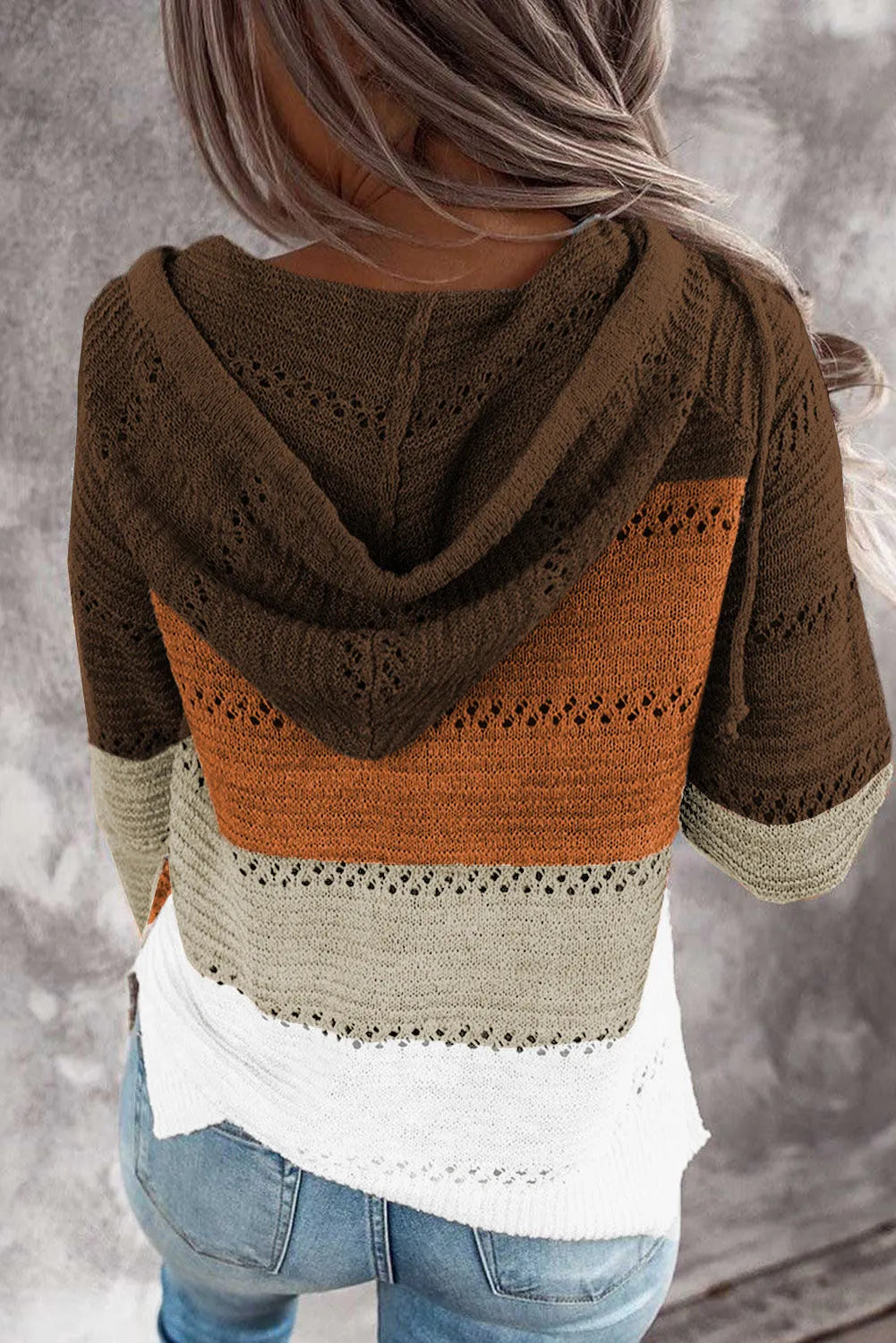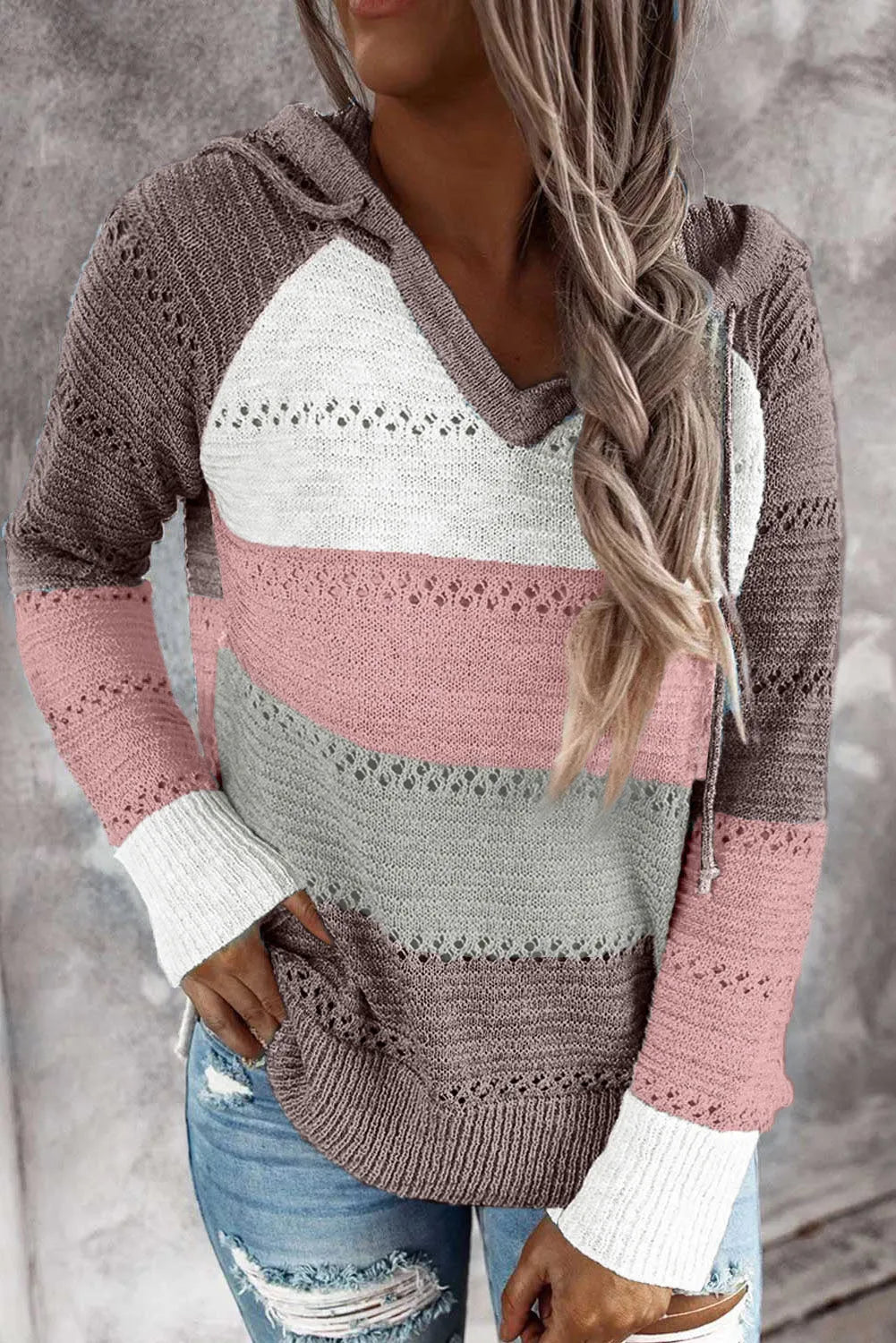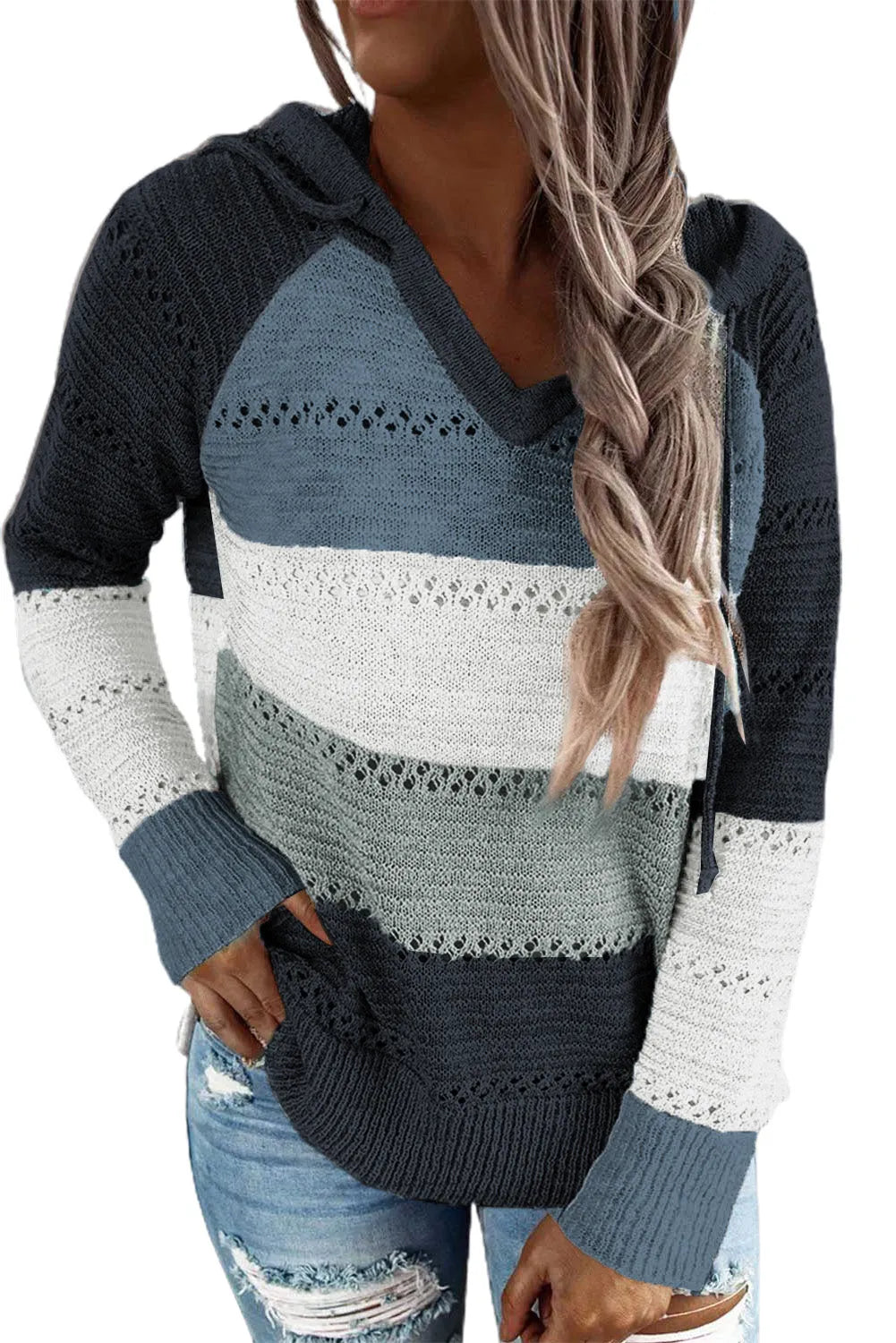 Full Size Color Block Knitted Hoodie