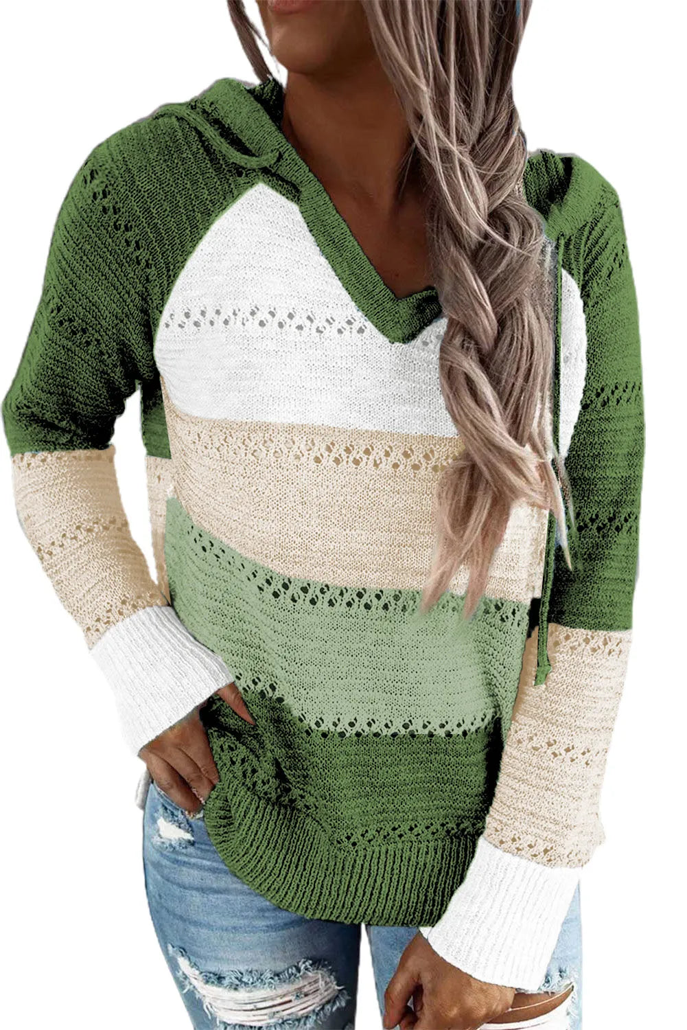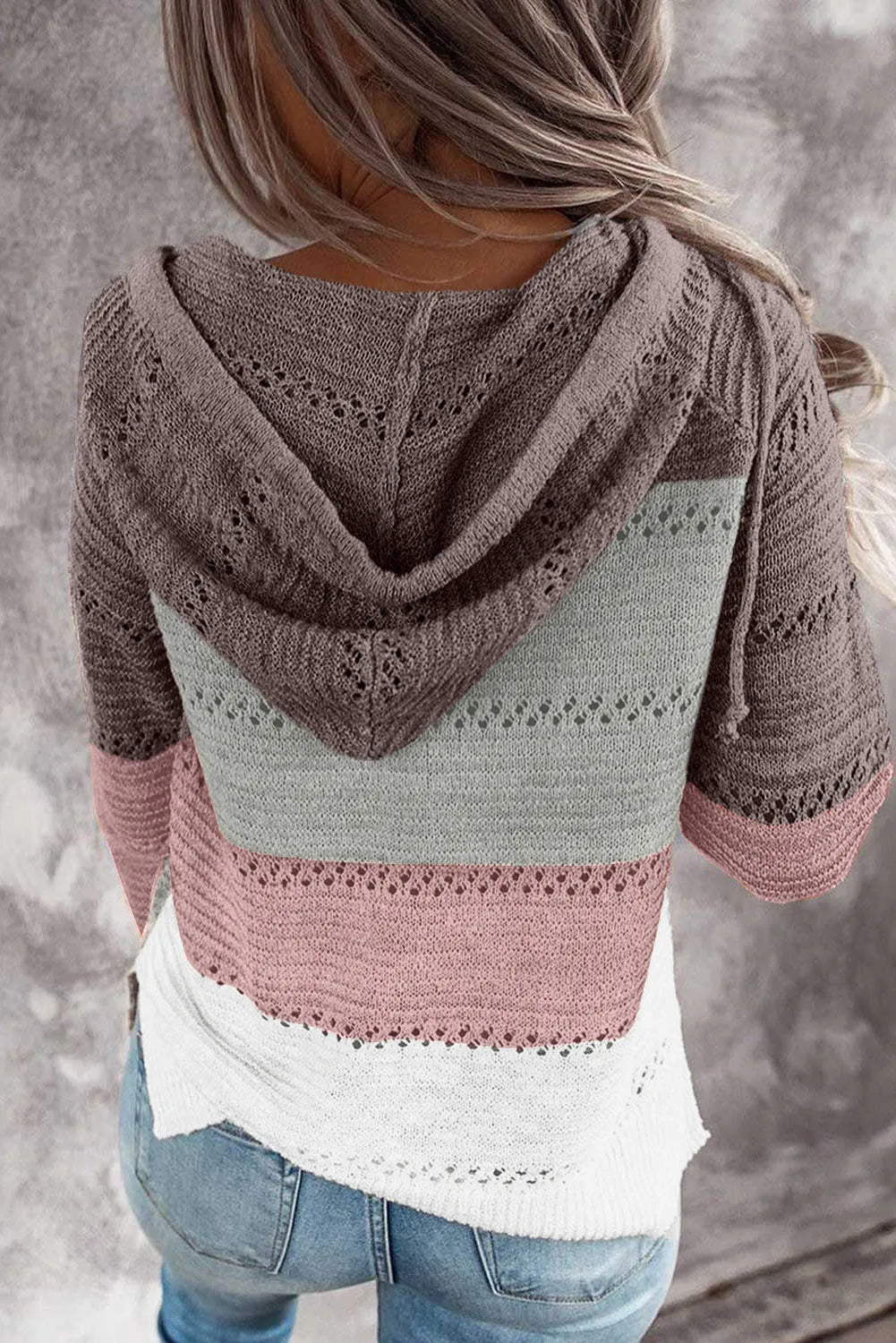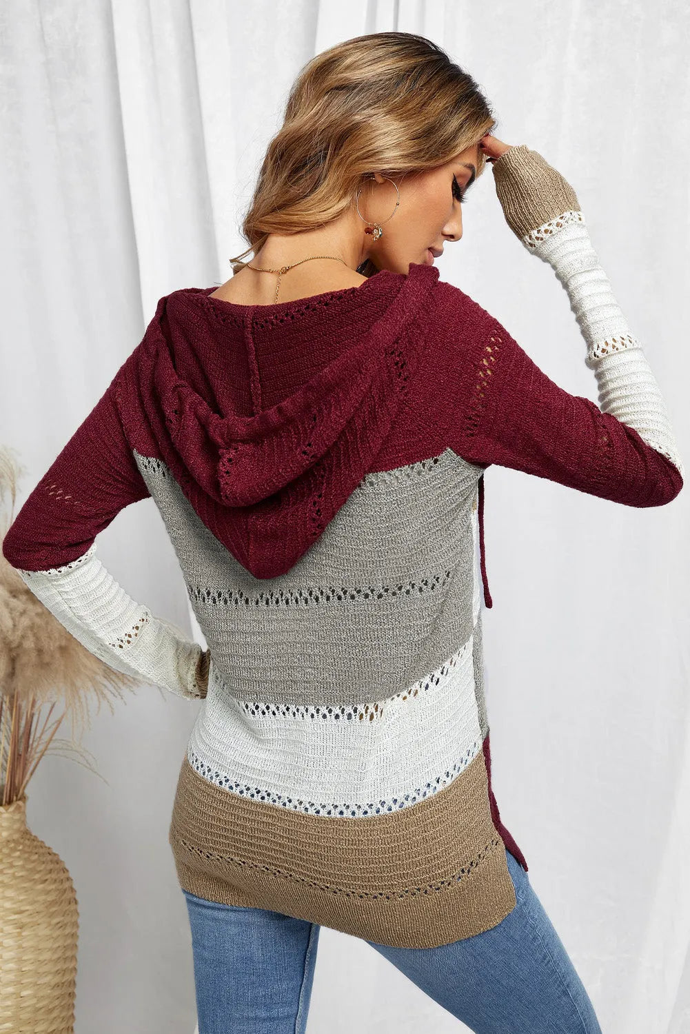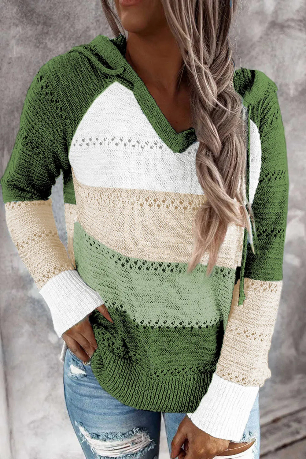 Full Size Color Block Knitted Hoodie