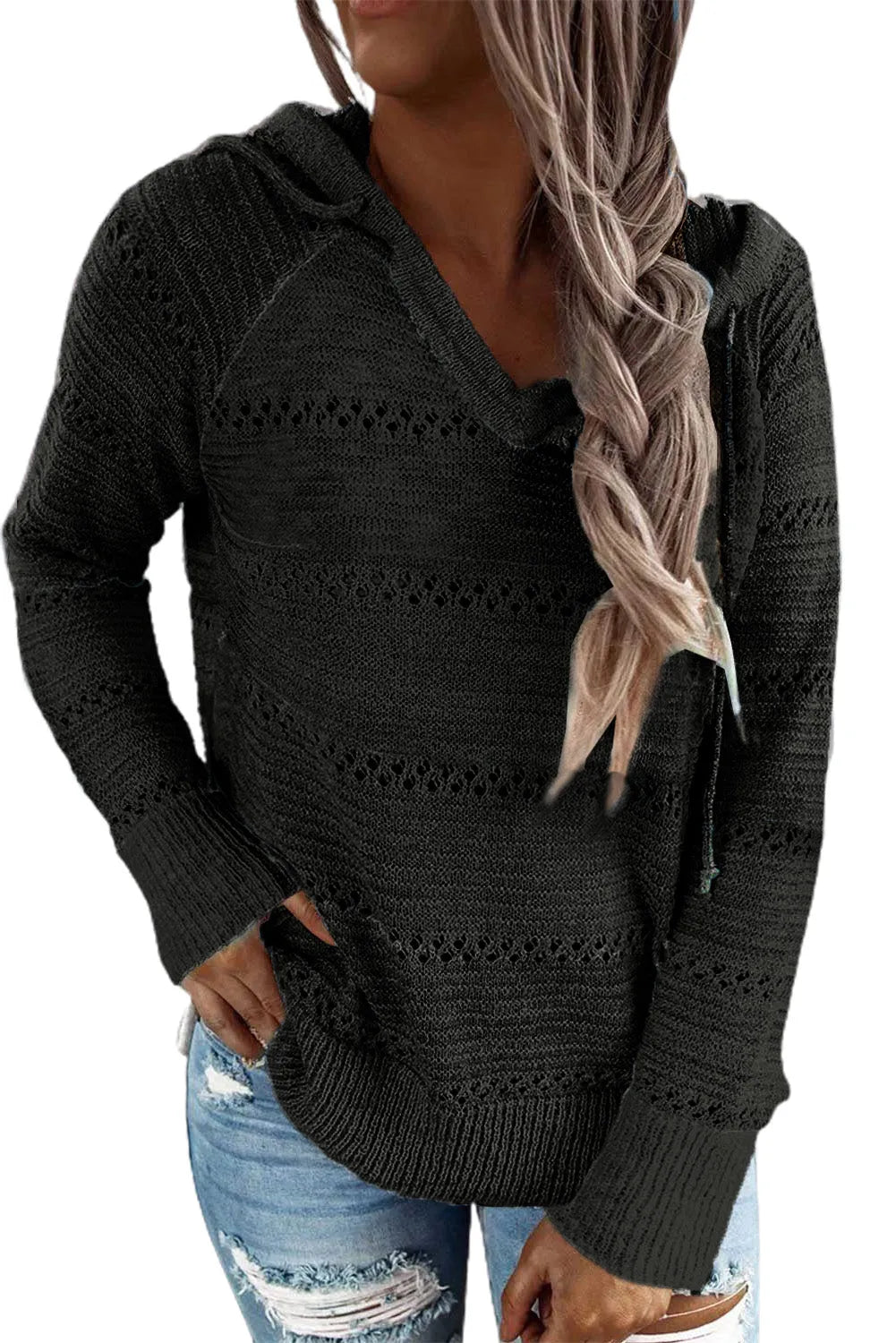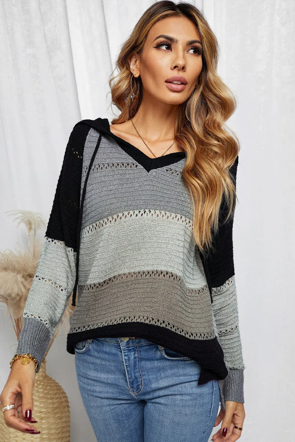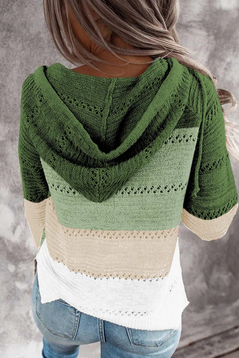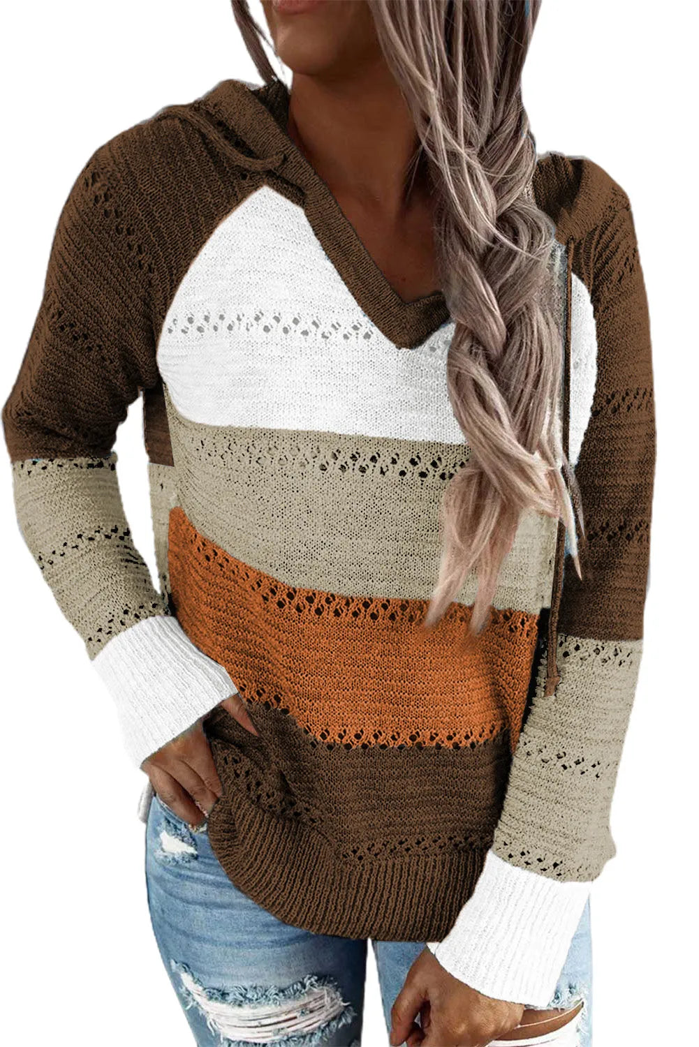Full Size Color Block Knitted Hoodie