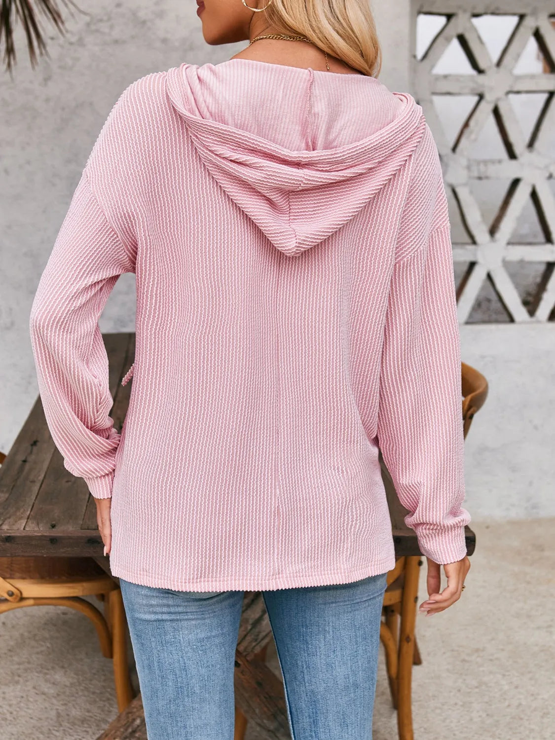 Double Take Drawstring Dropped Shoulder Long Sleeve Hoodie