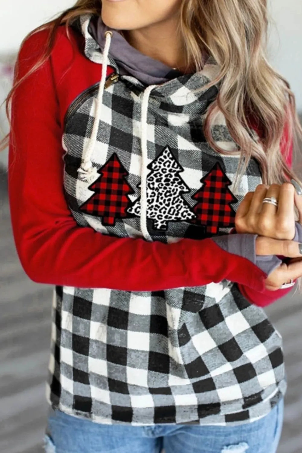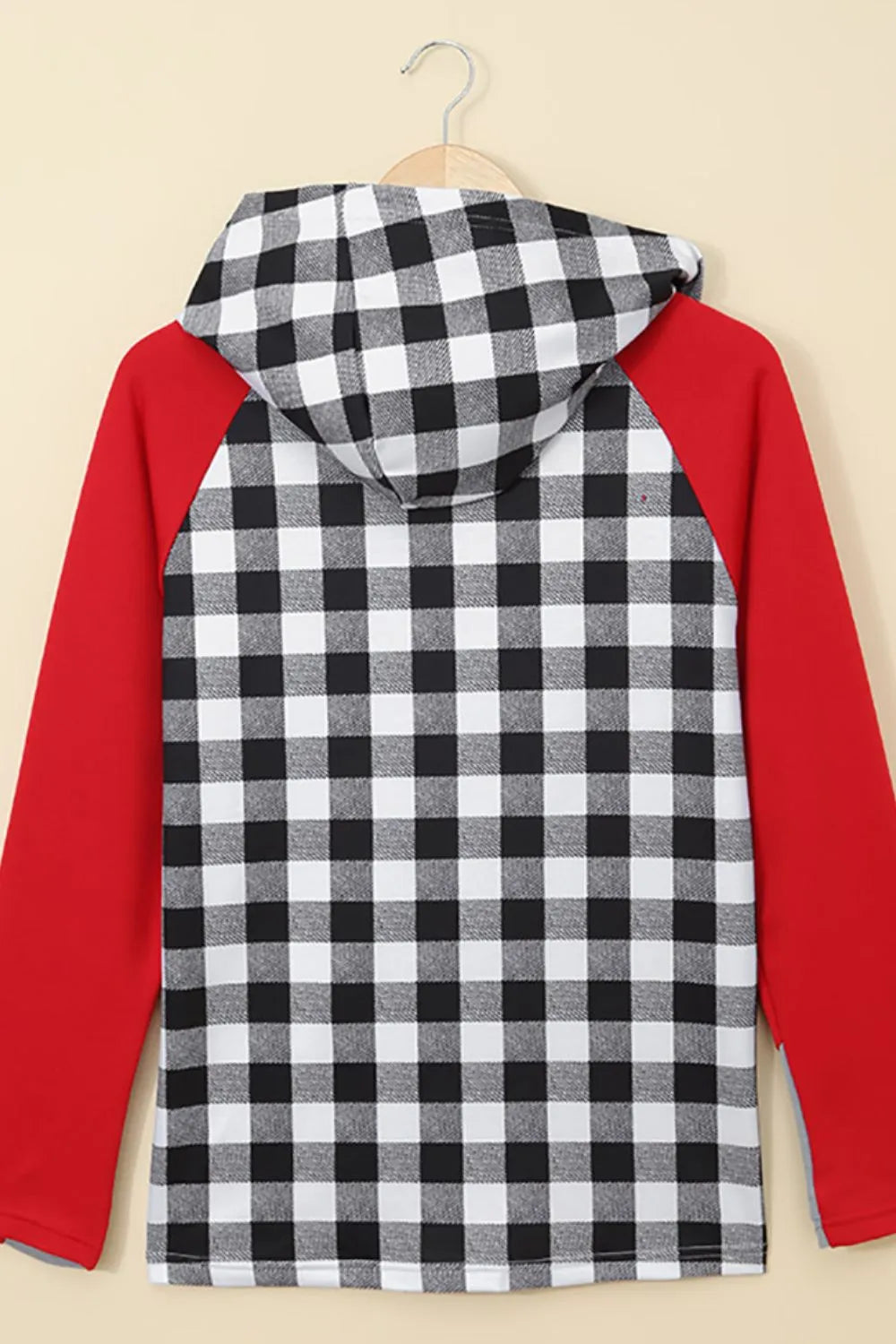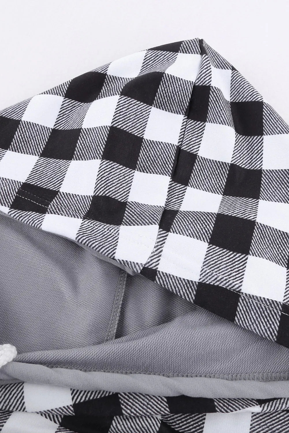 Drawstring Plaid Hooded Long Sleeve Top