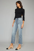 Kancan High Waist Raw Hem Cropped Wide Leg Jeans