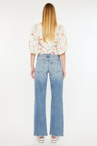 Kancan Mid Rise Frayed Hem Straight Jeans