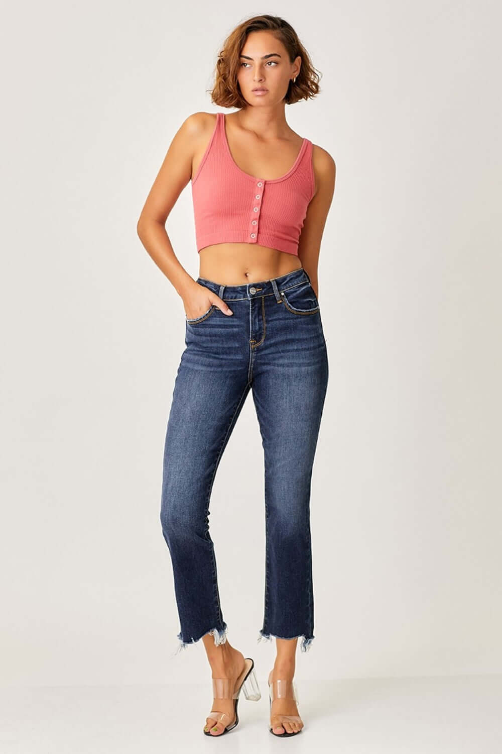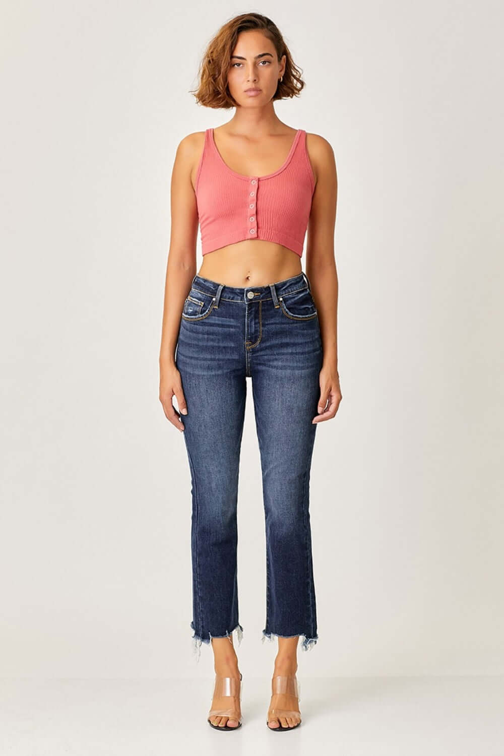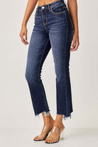 Risen Full Size Frayed Hem Cropped Straight Jeans