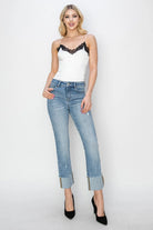 RISEN Full Size High Rise Cuffed Slim Straight Jeans