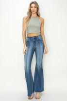 RISEN Full Size High Rise Front Seam Detailed Flare Jeans