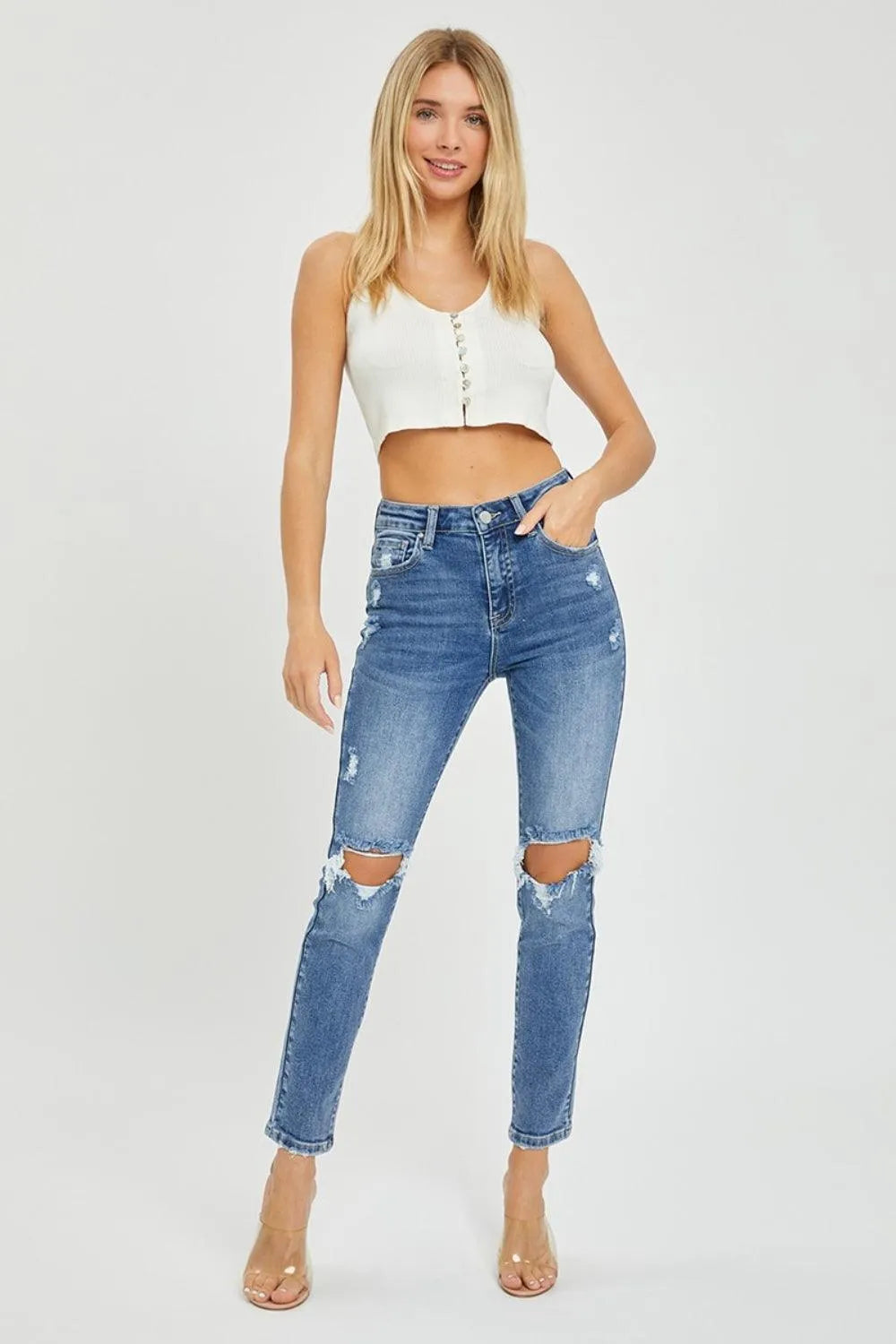 Risen Full Size High Rise Knee Distressed Skinny Jeans