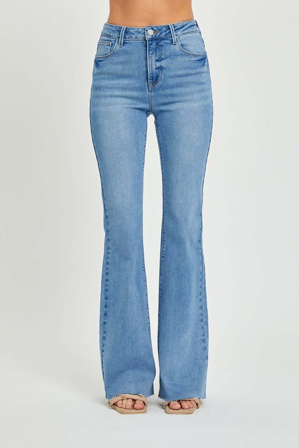 RISEN Full Size High Rise Raw Cut Hem Bootcut Jeans