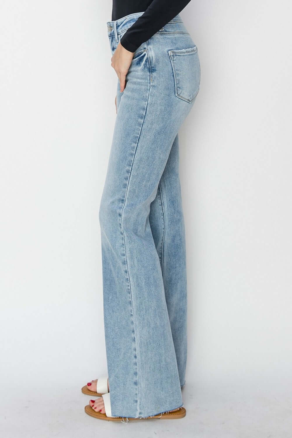 RISEN Full Size High Rise Raw Cut Hem Bootcut Jeans