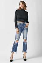 RISEN High Waist Distressed Frayed Hem Cropped Straight Jeans