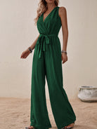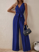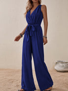 Honey Tied Surplice Sleeveless Wide Leg Jumpsuit