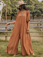 Scoop Neck Half Sleeve Wide Leg Jumpsuit