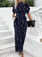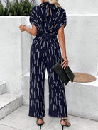 Tied Printed Mock Neck Wide Leg Jumpsuit