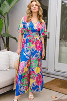 ODDI Full Size Floral Smocked Tied Back Jumpsuit