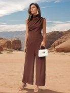 Perfee Ruched Mock Neck Sleeveless Jumpsuit