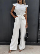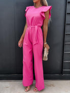 Ruffled Round Neck Cap Sleeve Jumpsuit