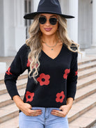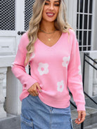 Angel Wings Flower V-Neck Long Sleeve Sweater