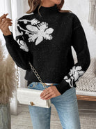 Perfee Flower Mock Neck Long Sleeve Sweater