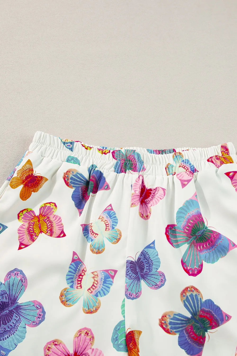 Multicolour Butterfly Pattern Short Sleeve Shirt Pajamas Set
