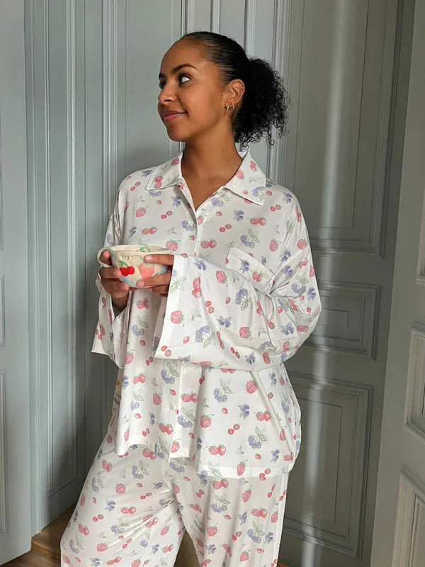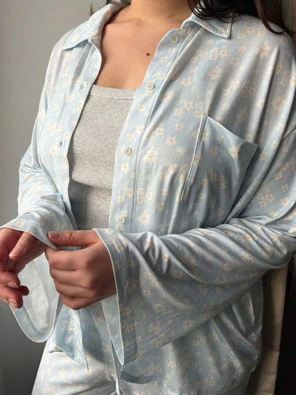 New long-sleeved printed pajamas slit irregular trousers loose suit home service