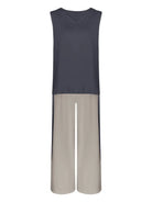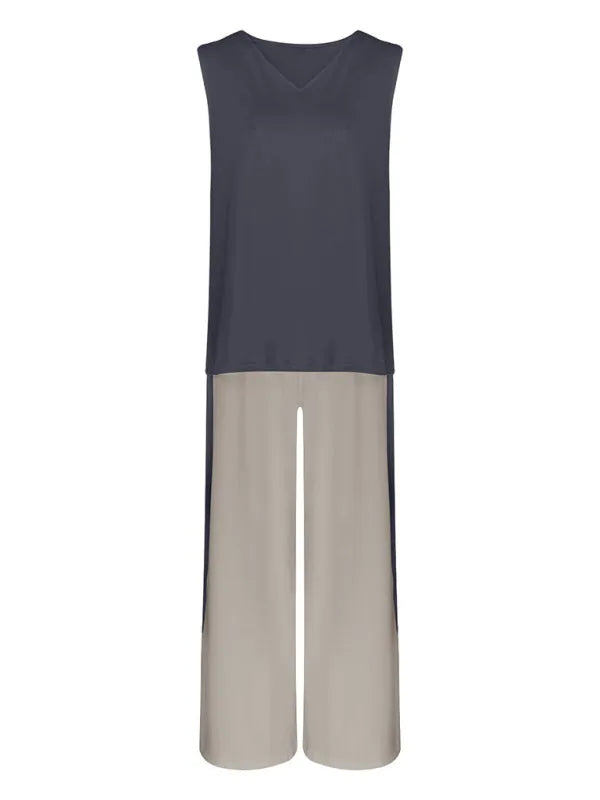 Women's Casual Contrasting Color Sleeveless Vest + Long Sleeve Cardigan Jacket + Trousers Three Sets