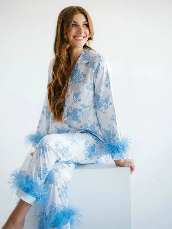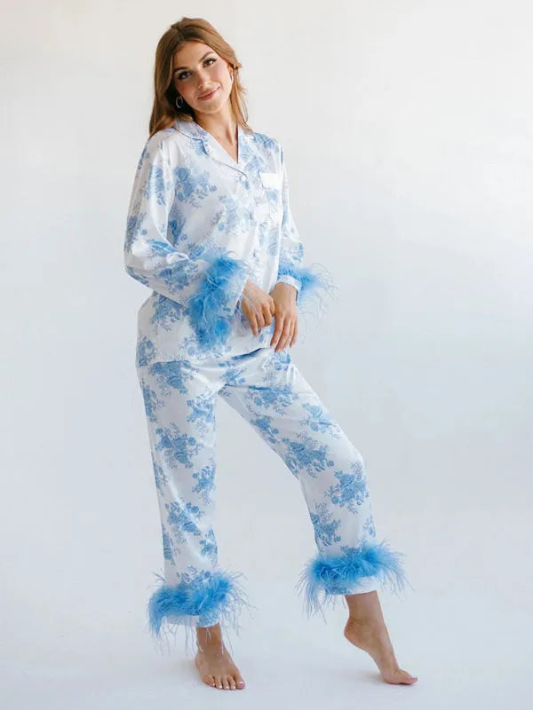 Women's New Satin Print Casual Suit Pajamas Home Clothes