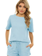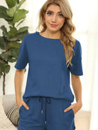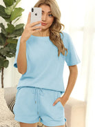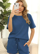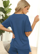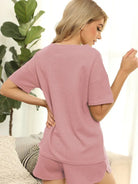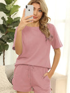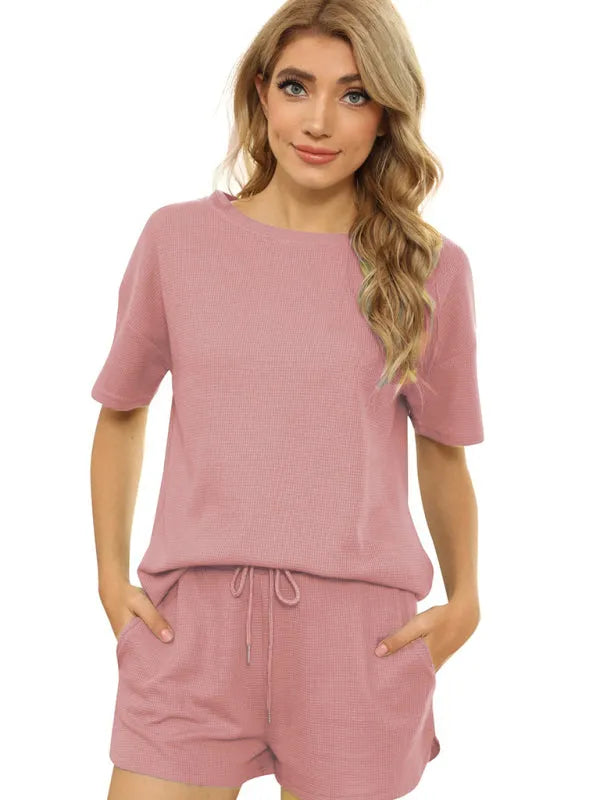 Women's Short Sleeve Loungewear Solid Color Casual Waffle Two-Piece Set