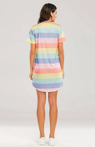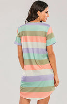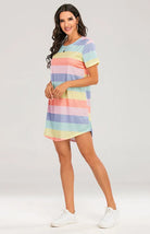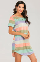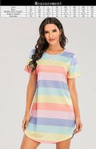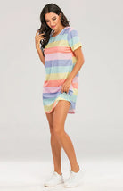 Women's Short Sleeve Rainbow Striped Loose T-Shirt Pyjama Sets