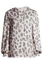 Khaki Leopard Print Drawstring Hoodie and Skinny Pants Pajama Set