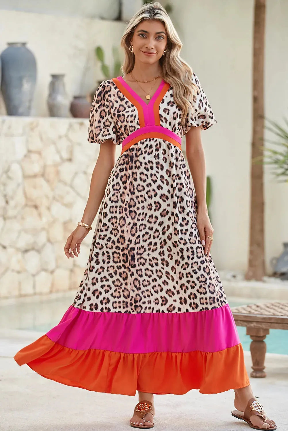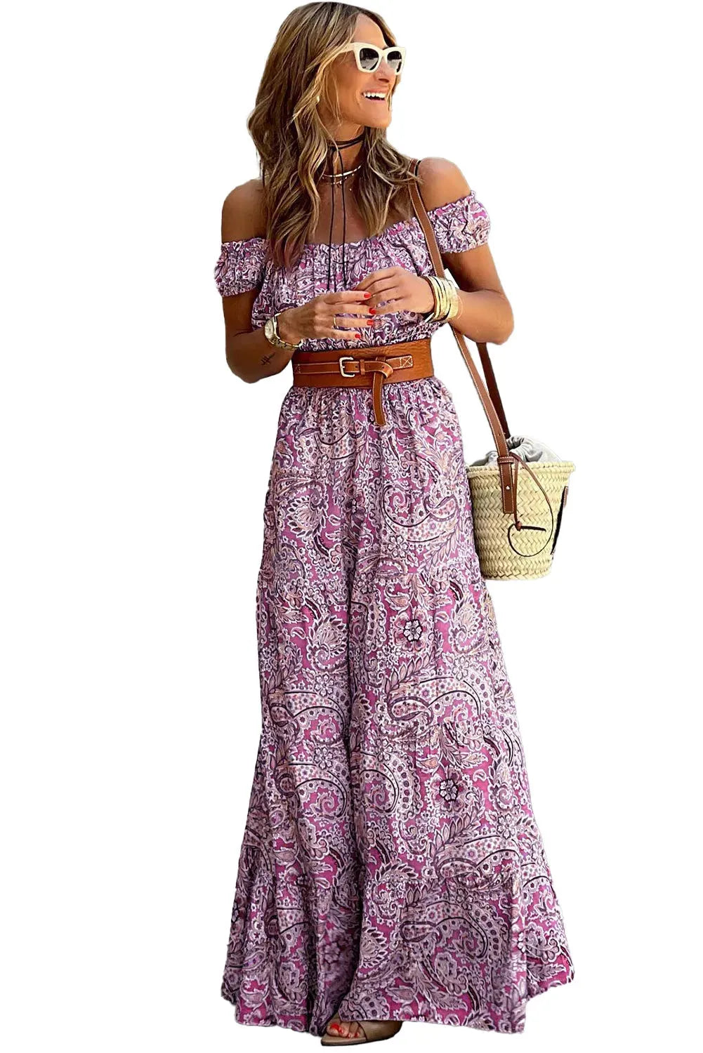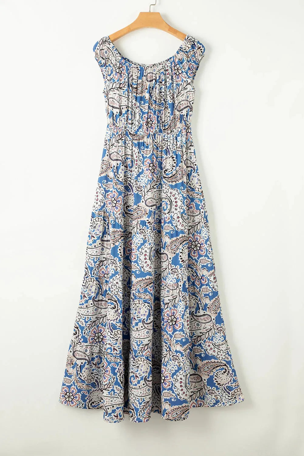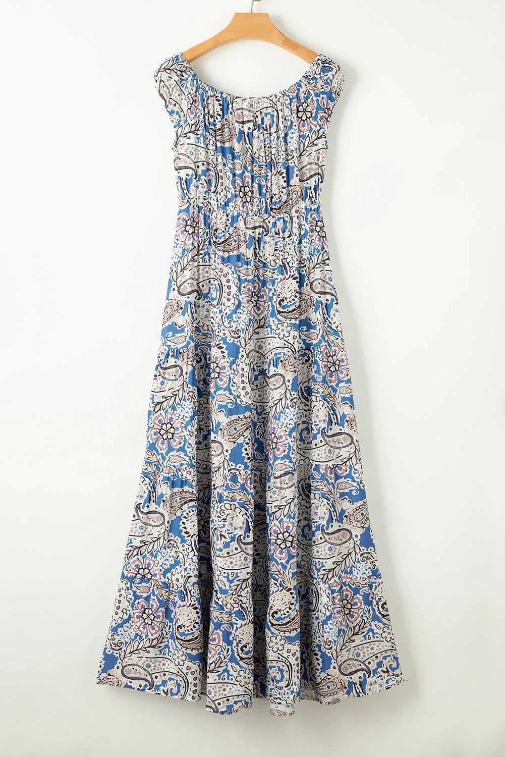 Printed Round Neck Short Sleeve Maxi Dress - 6i6