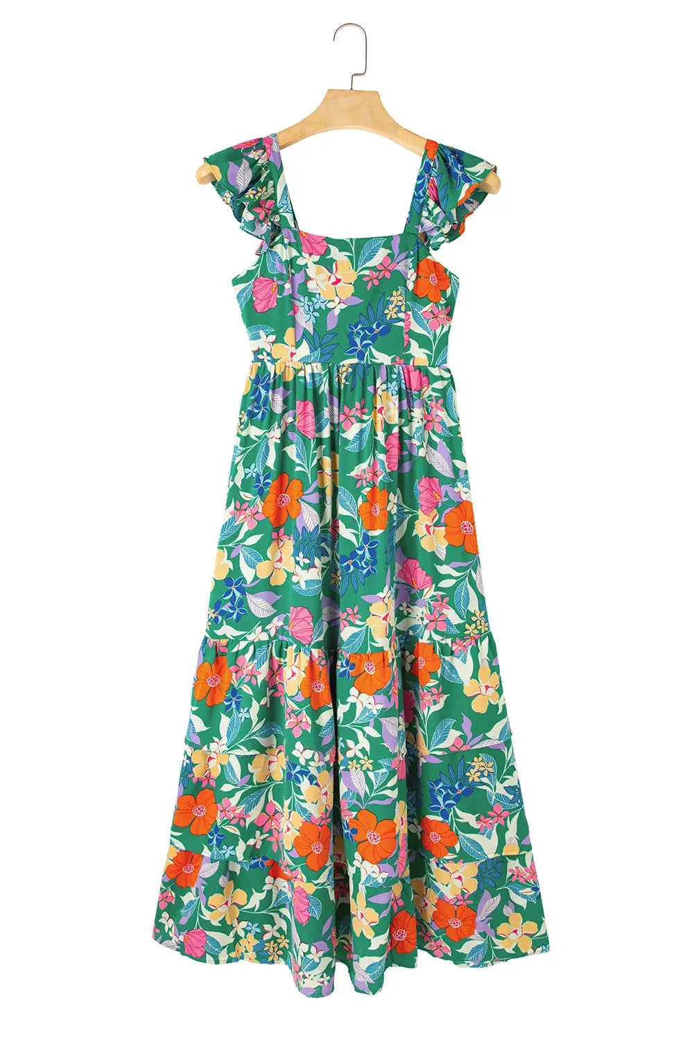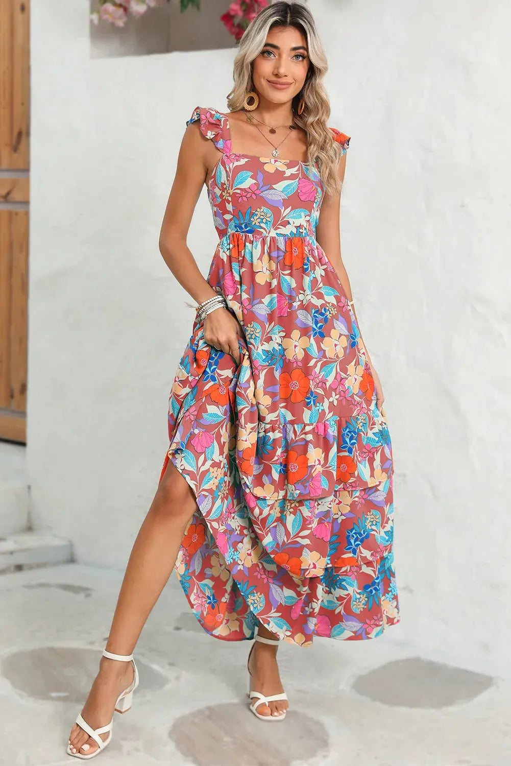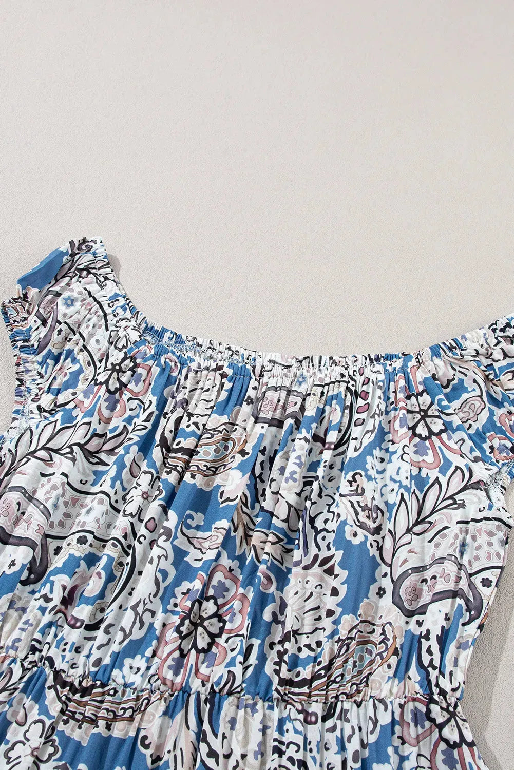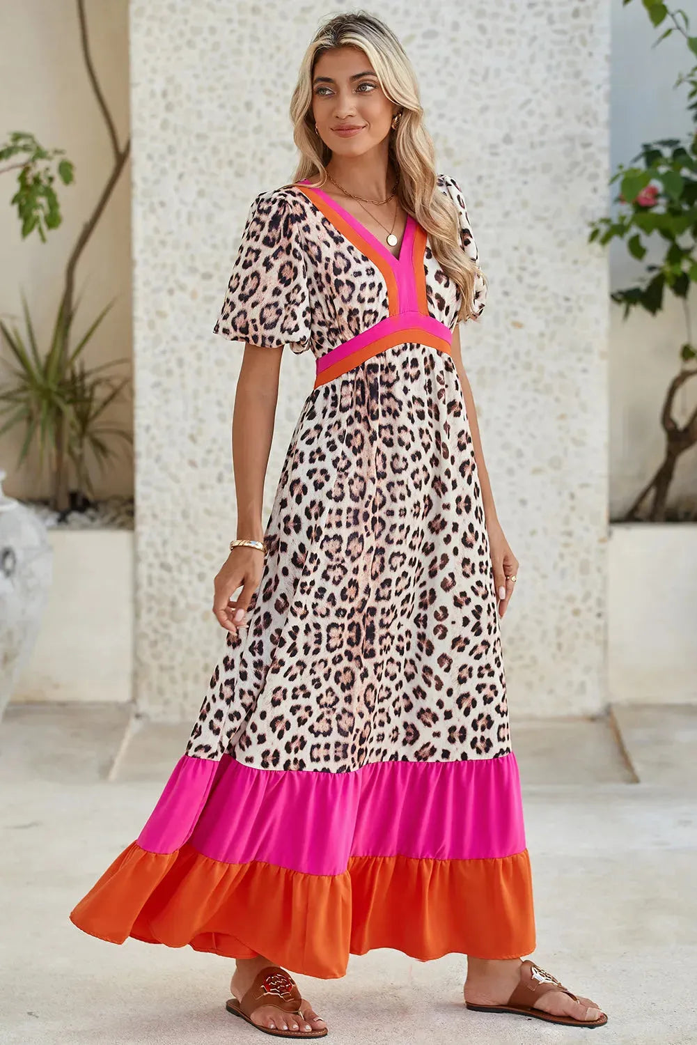 Printed Round Neck Short Sleeve Maxi Dress - 6i6
