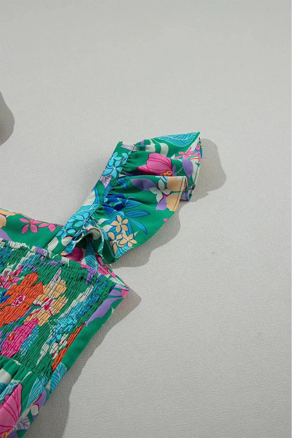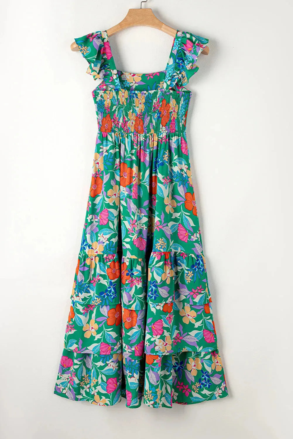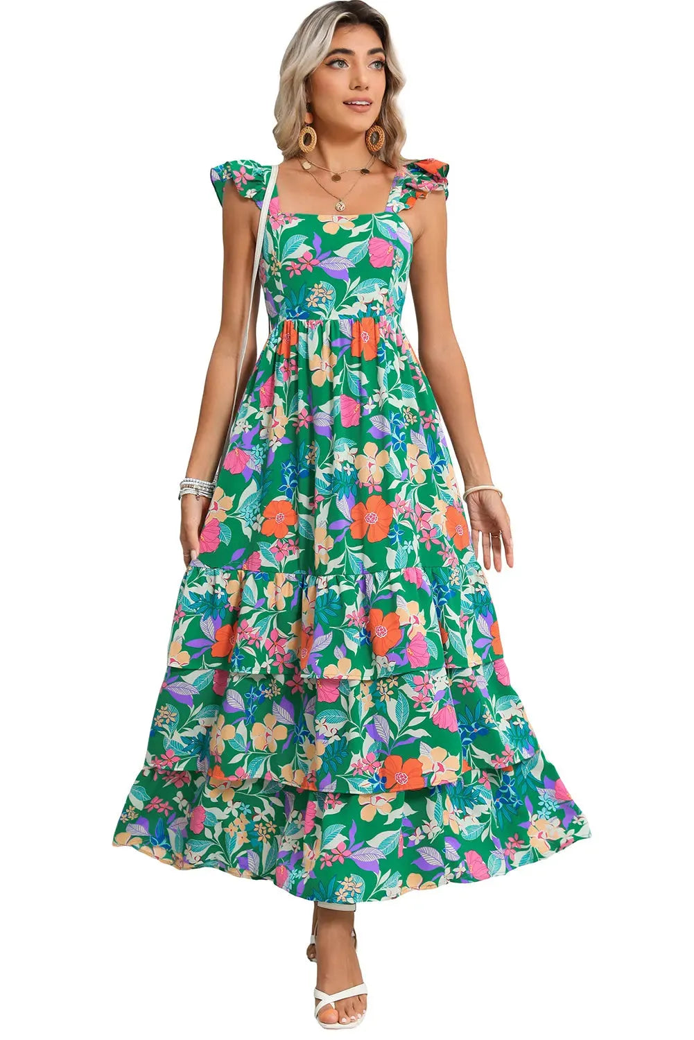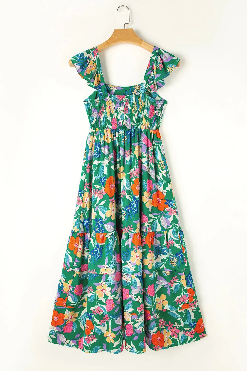 Printed Round Neck Short Sleeve Maxi Dress - 6i6
