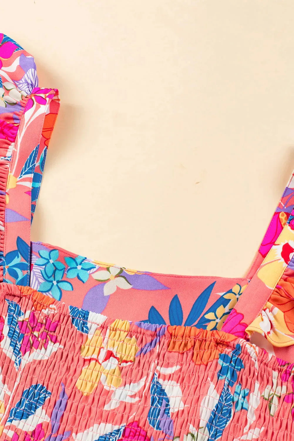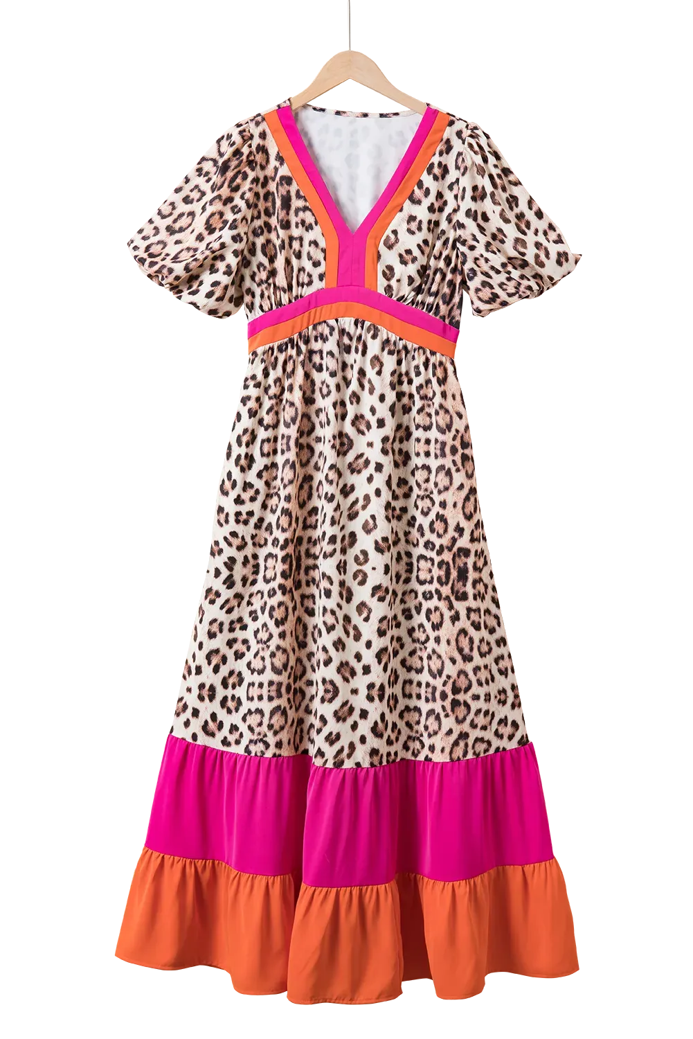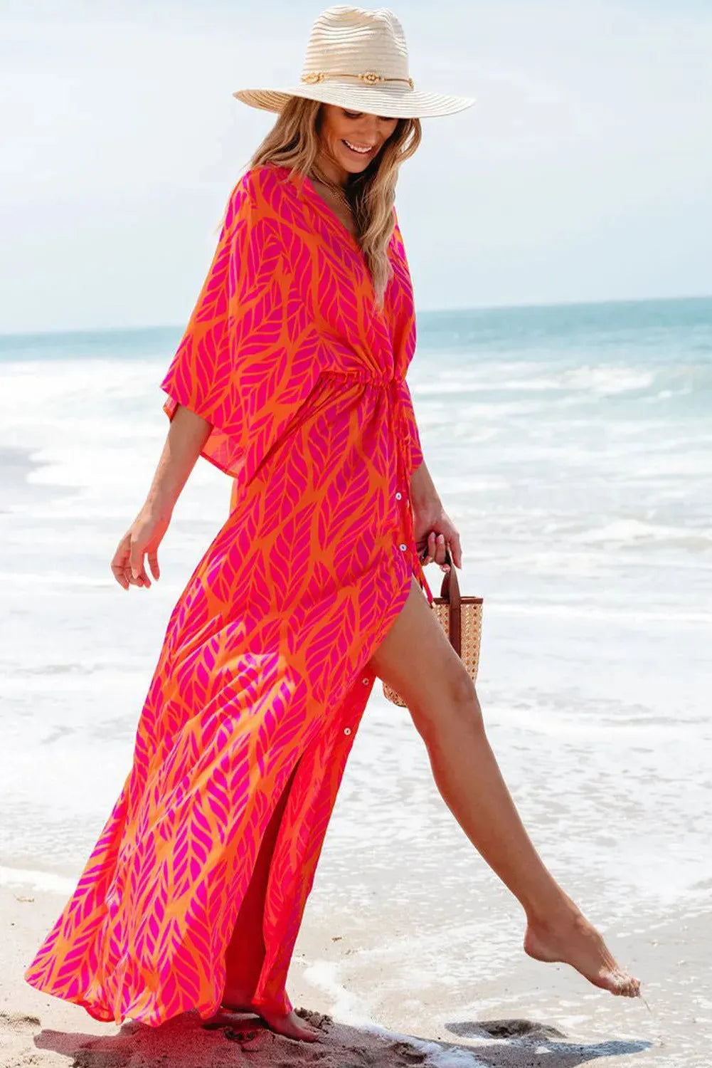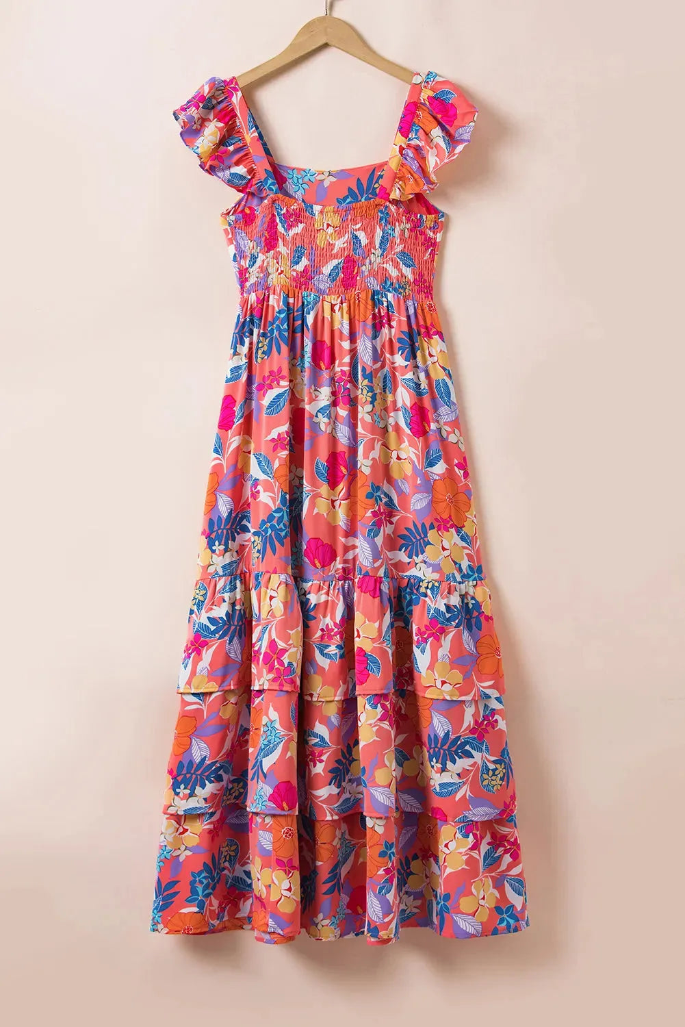 Printed Round Neck Short Sleeve Maxi Dress - 6i6