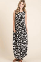 The leopard Print Shirring Waist Maxi Dress with Pockets combines style and functionality. This maxi dress features a trendy animal print design with a shirring at the waist for a flattering silhouette. The addition of pockets adds convenience and practicality to this chic and comfortable dress. Perfect for a stylish and effortless look, this dress is versatile and perfect for various occasions.